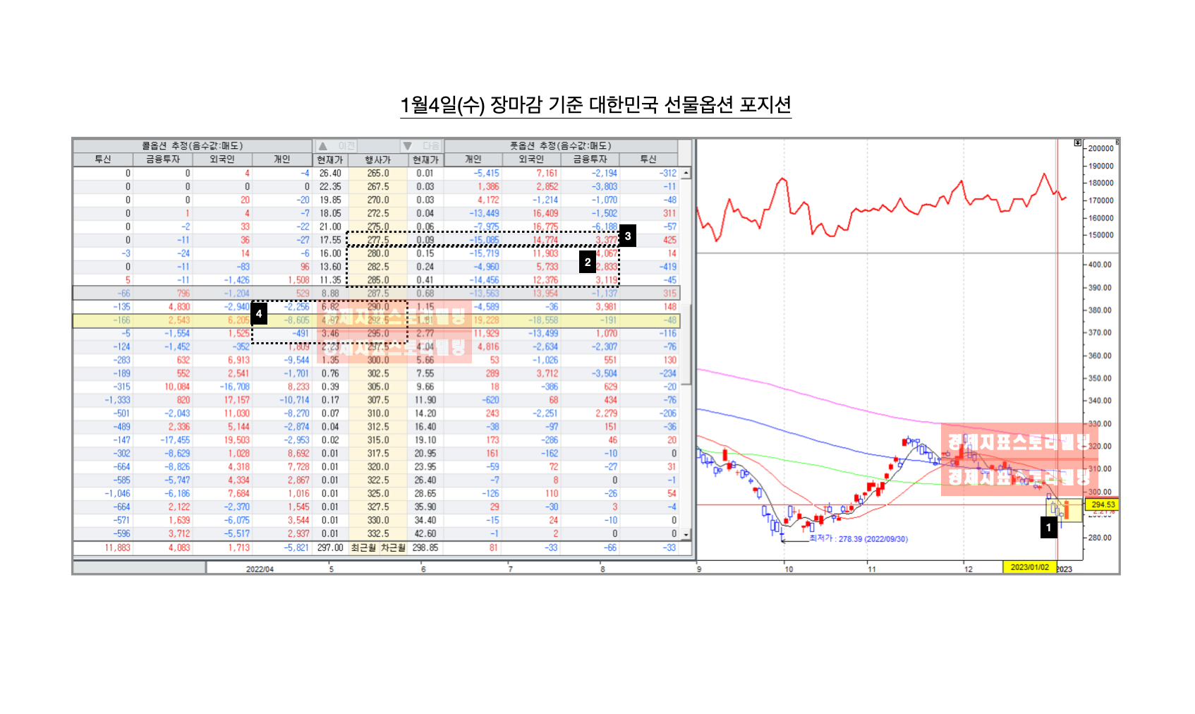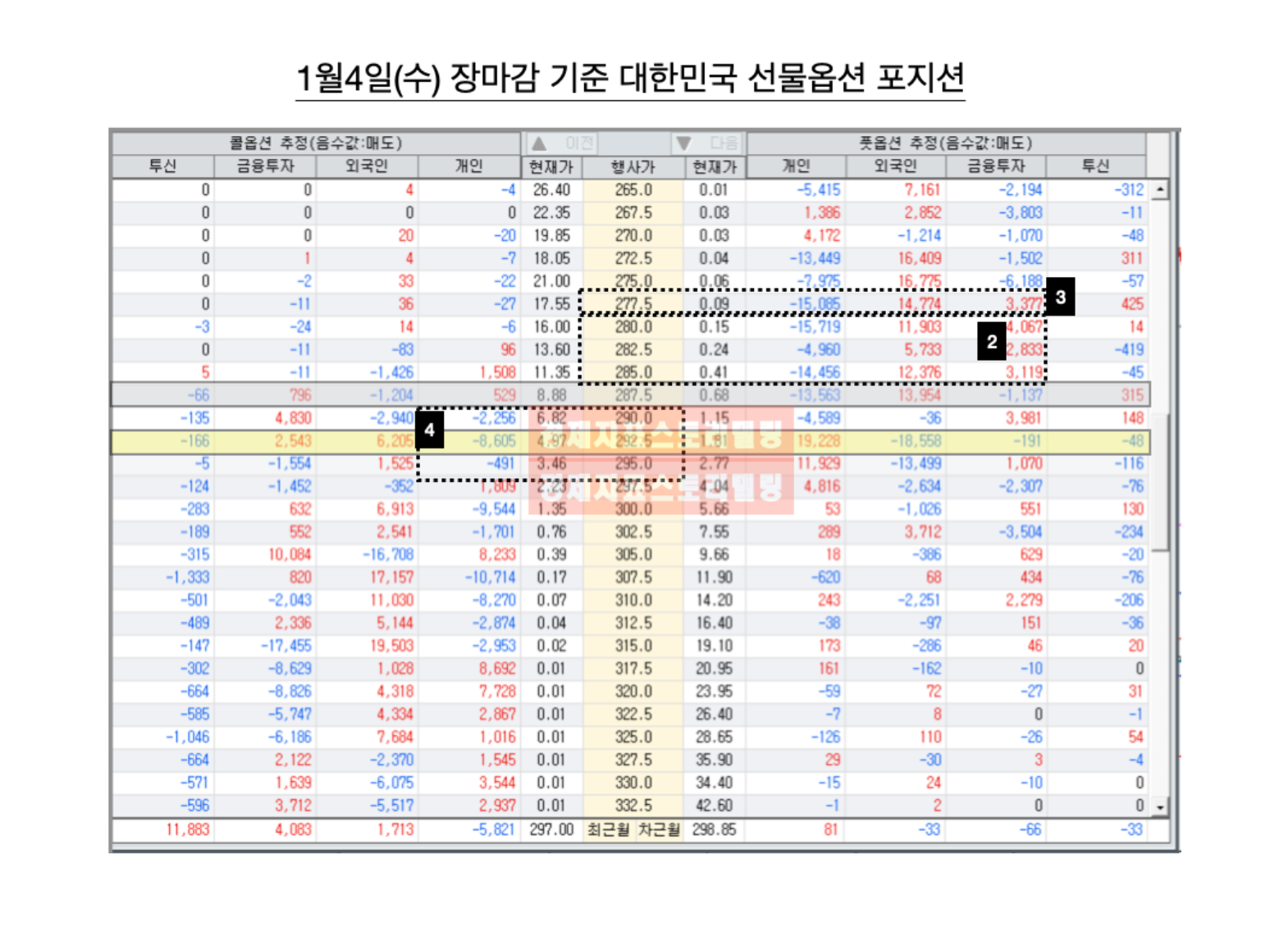 3. 1월4일(수) 장마감 기준 대한민국 선물옵션 포지션