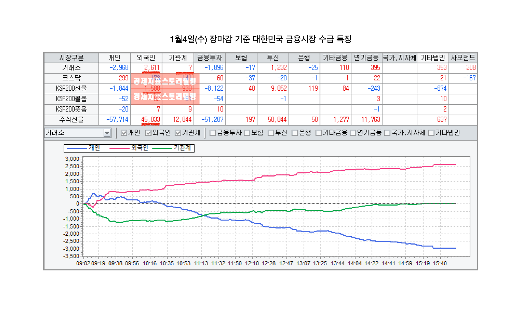 2. 1월4일(수) 대한민국 금융시장의 수급 특징. 겁먹은 기관을 비웃은 외국인