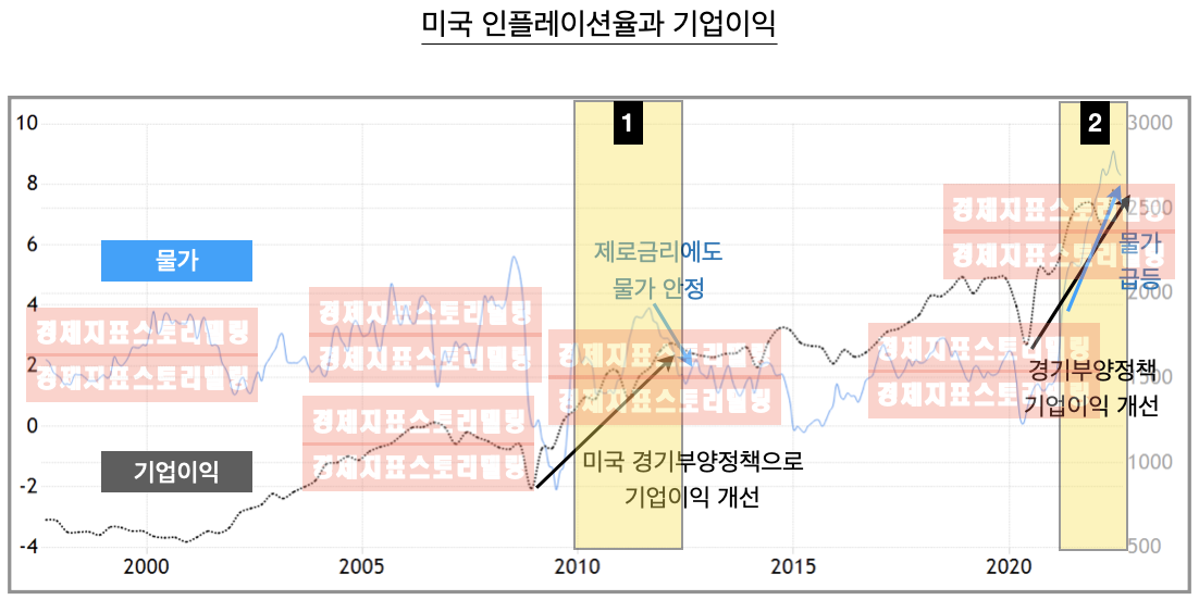 2. 2020년 이후 미국 인플레이션율과 미국 기업이익 특징
