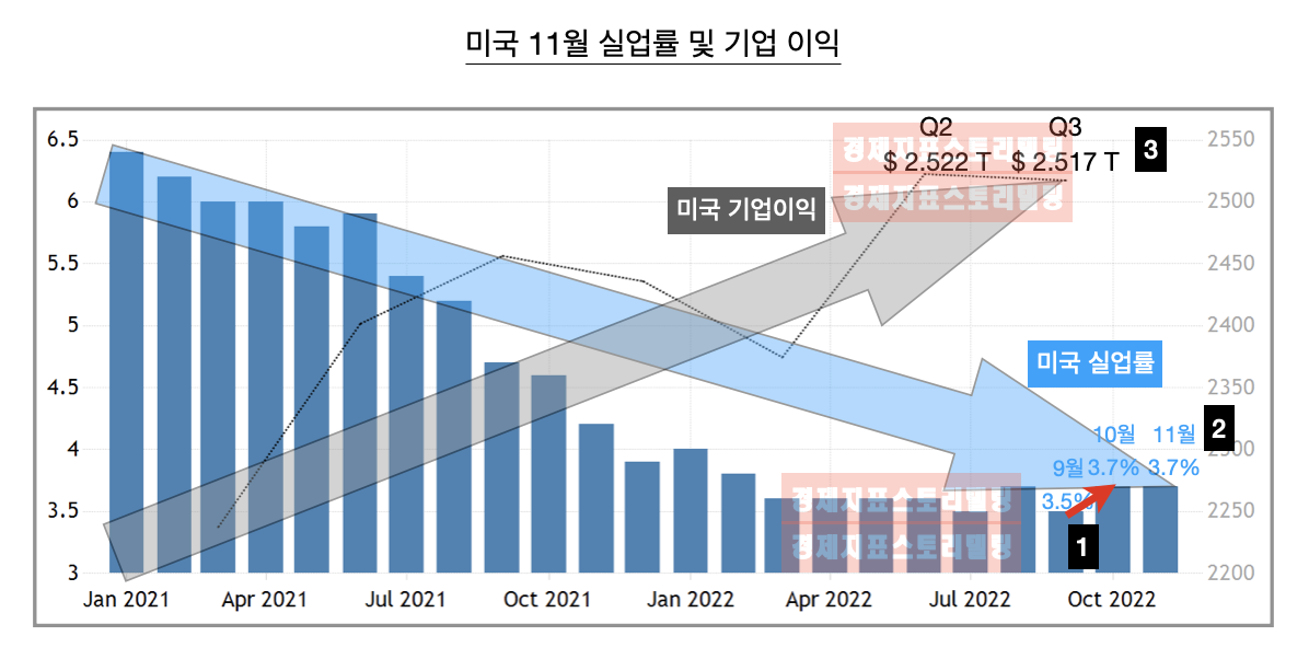 미국 11월 실업률과 2022년 3분기 미국 기업이익